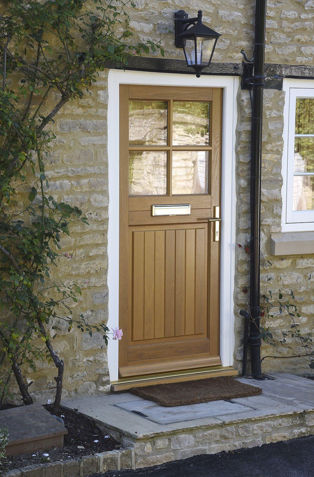 The oak door in a Light Oak stain shows off the natural variation of real timber, while an Off-White painted frame creates a contrasting outline.