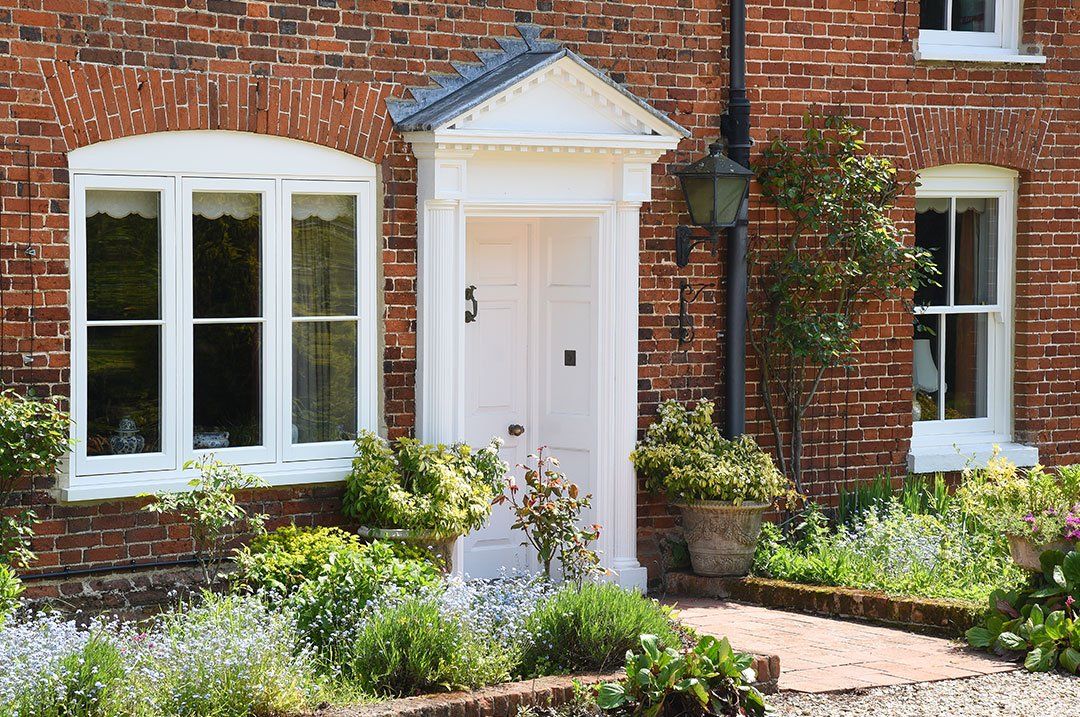 - Flush casement windows all finished in Off White with 18mm horizontal astragal bars.