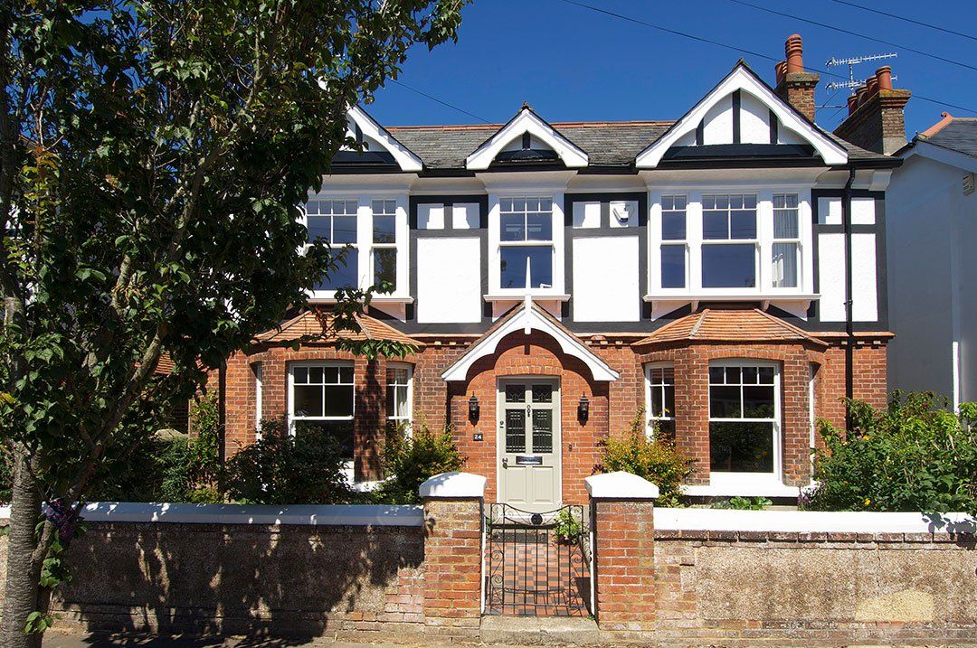 Sash windows were specified all round, including Venetian sash windows to the upper rooms; these are a style common to many period properties featuring fixed outer sashes and a sliding centre. Decorative horns, 18mm astragal bars and a White painted finish were also chosen.